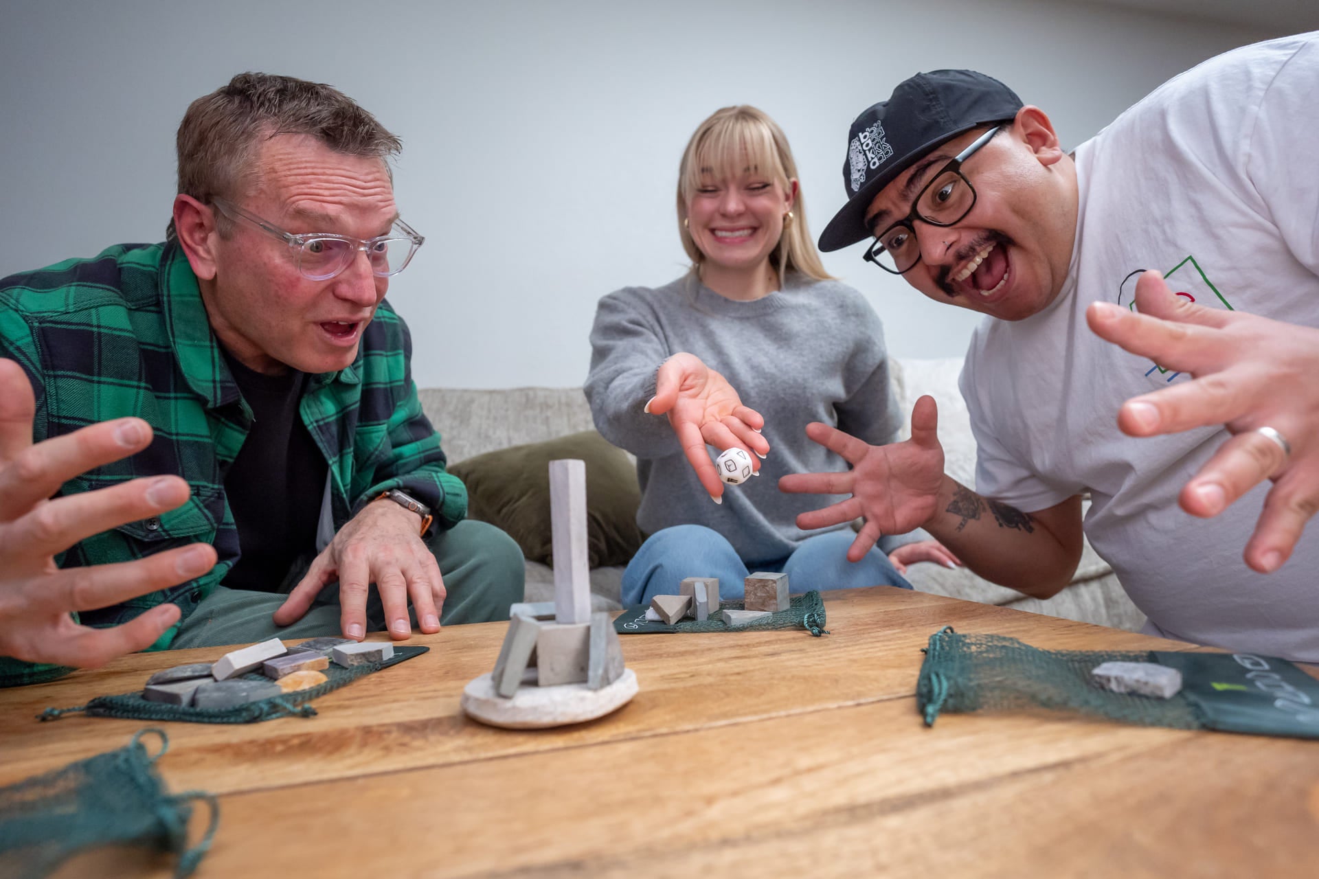 Piste-Off Games bridges this gap. Our name—a playful nod to going “off-piste” in skiing—represents our commitment to creating experiences that take players off the beaten path. We create and curate tabletop games that capture the spirit of outdoor adventure while incorporating natural elements in their design and gameplay. Talus Tumble, our flagship game featuring hand-carved rock pieces inspired by nature’s precarious formations, embodies our philosophy: games should be tactile, thought-provoking, and connect us to the natural world.